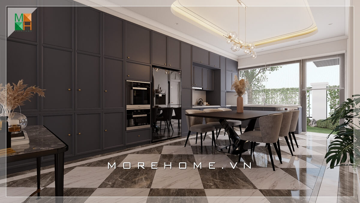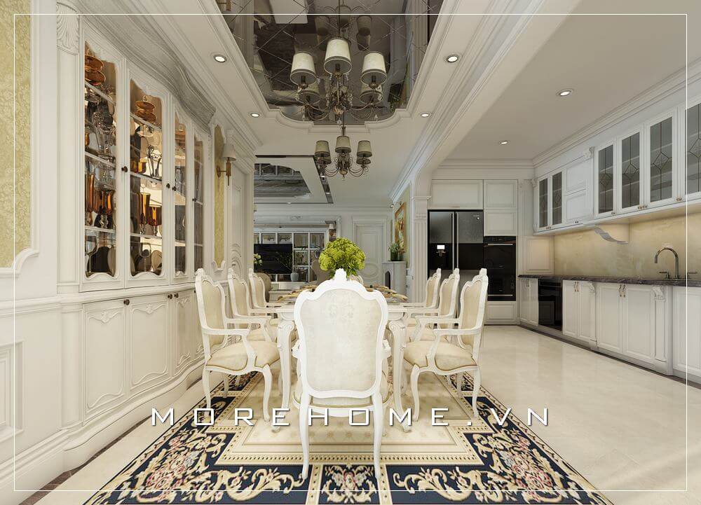 Thiết kế nội thất phòng bếp ăn biệt thự theo phong cách tân cổ điển sang trọng và đẳng cấp