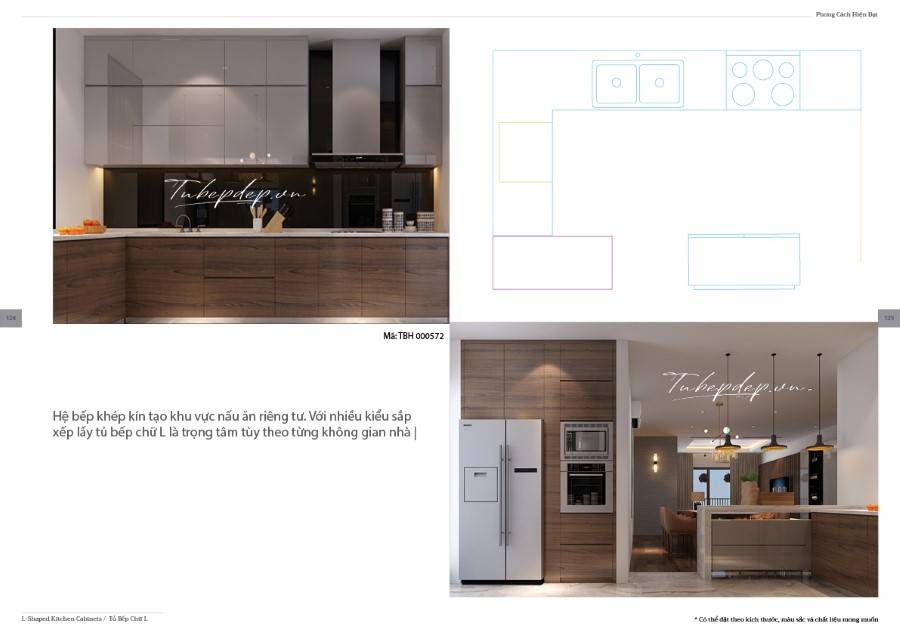 Thiết kế phòng bếp hình chữ U với nội thất gỗ tự nhiên cao cấp cho nhà chung cư biệt thự, nhà phố, nhà ống sang trọng.