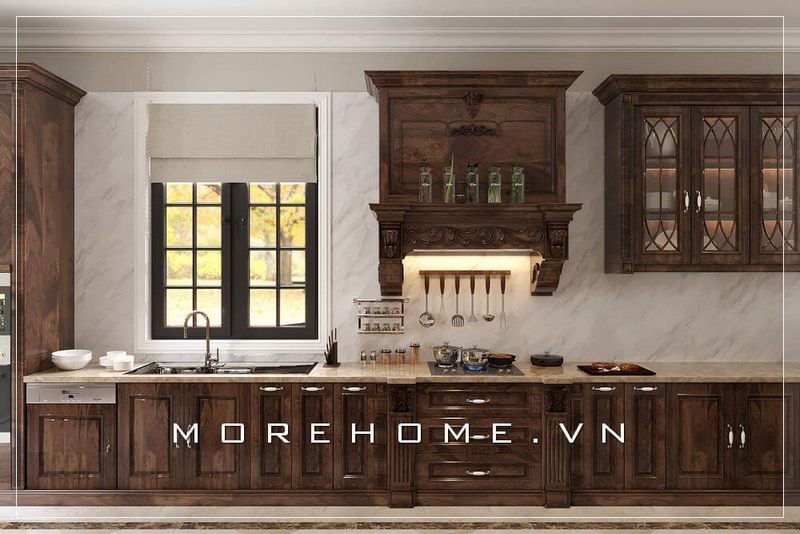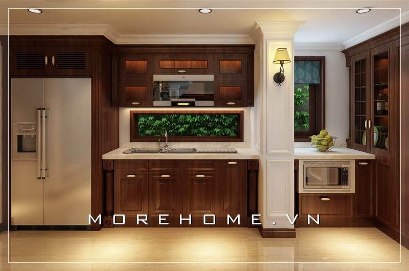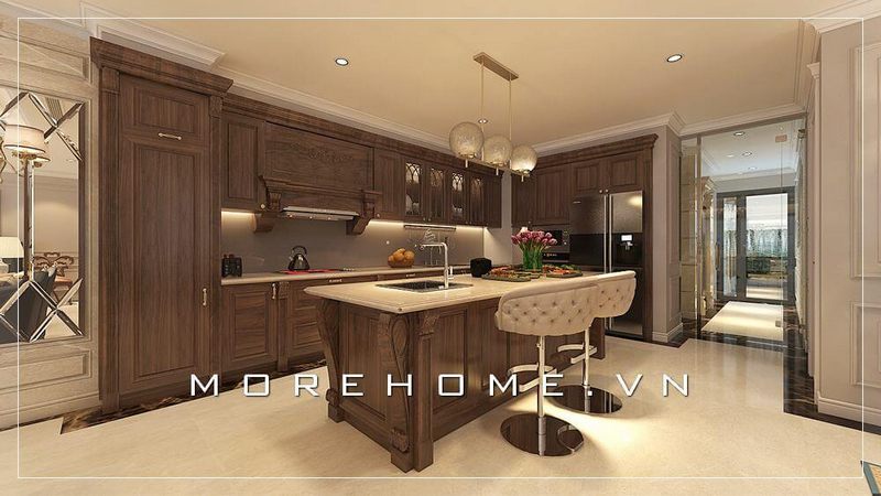 Morehome thiết kế phòng bếp đẹp hiện đại cho biệt thự bằng chất liệu gỗ tự nhiên nhập khẩu chất lượng