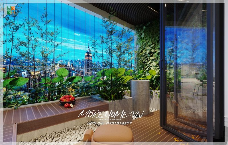 Với không gian thông thoáng nhờ vào cửa kính trượt trong suốt giúp ánh sáng lọt vào phòng dễ dàng và gia chủ có thể quan sát mọi vật xung quanh dễ dàng.