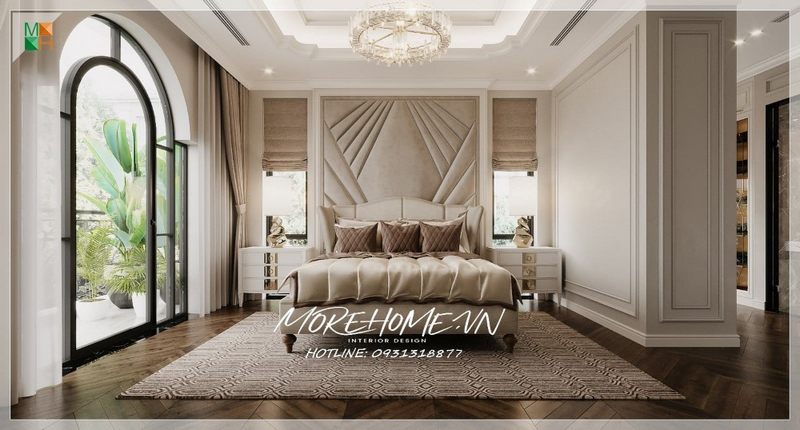 Mẫu giường ngủ với từng chi tiết tân cổ điển hoàn hảo, với khung giường gỗ tự nhiên bọc đệm mút cao cấp giúp mang đến những giấc ngủ êm ái cho gia chủ