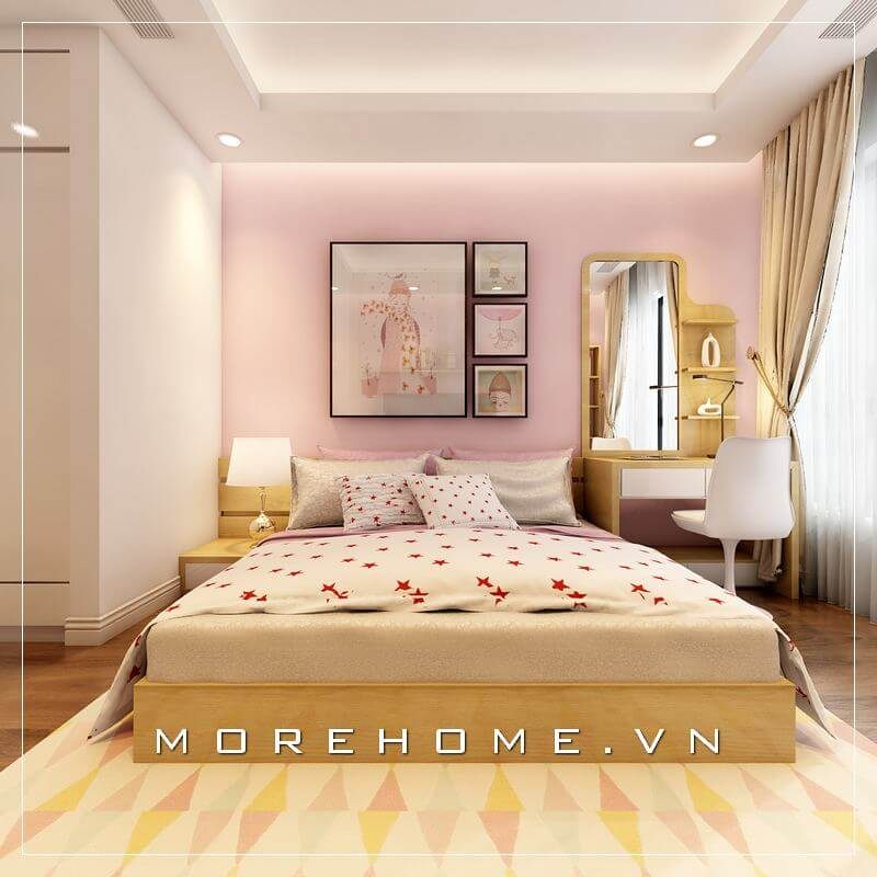 Mẫu giường ngủ gỗ công nghiệp với gam màu nhẹ nhàng mang đến vẻ đẹp thanh lịch và trẻ trung cho không gian phòng ngủ
