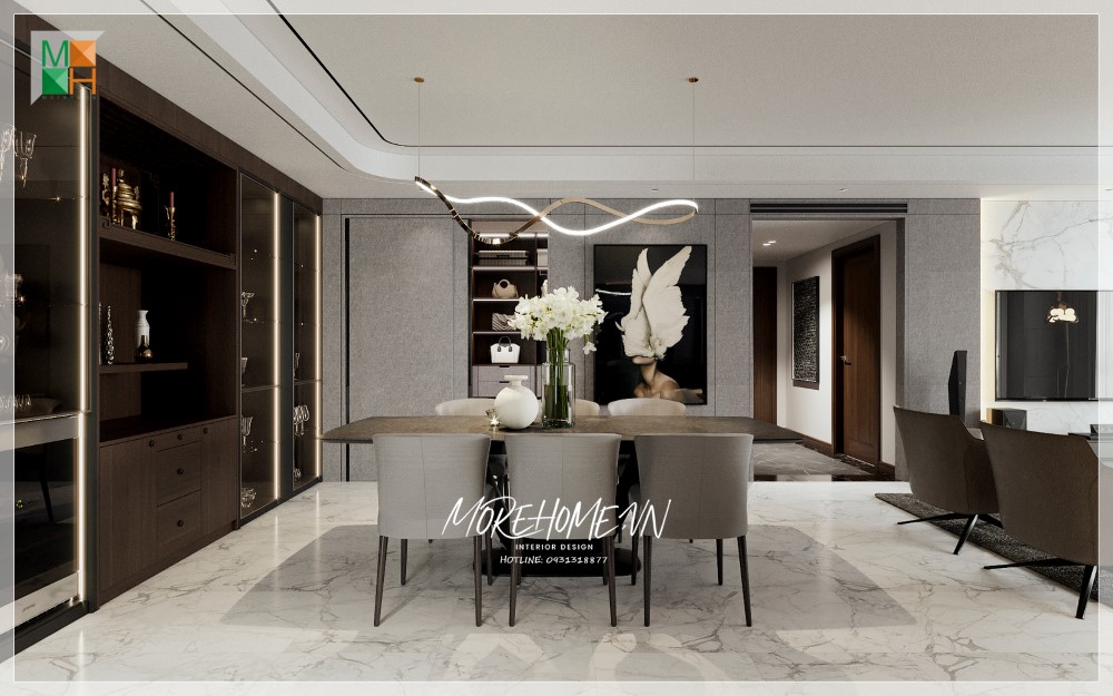 Thiết kế nội thất phòng ăn chung cư tinh tế và sang trọng