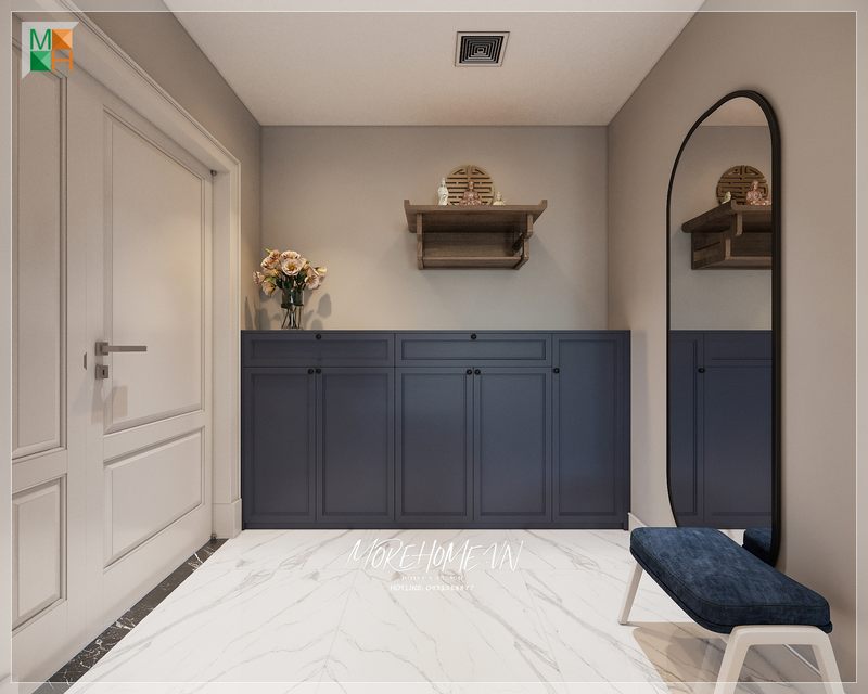 Không gian phòng khách được bố trí vị trí trang nghiêm nhất cho bàn thờ treo tường tổ tiên