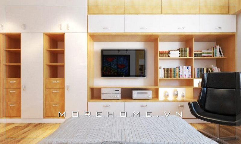 Thiết kế tủ áo hiện đại, đa năng tích hợp kệ ti vi, kệ sách tiện nghi và sang trọng
