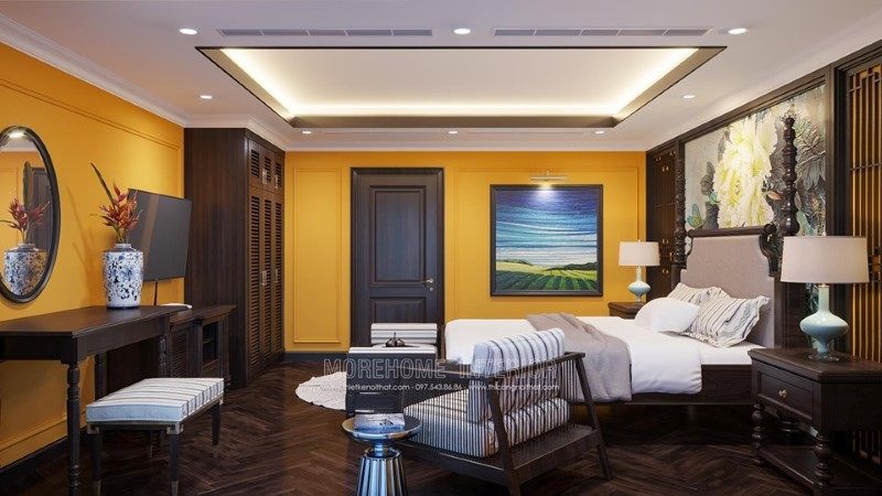 Thiết kế phòng ngủ với phong cách indochine được nhiều gia đình chú ý tới bởi nó tôn lên nét đẹp sang trọng, đẳng cấp