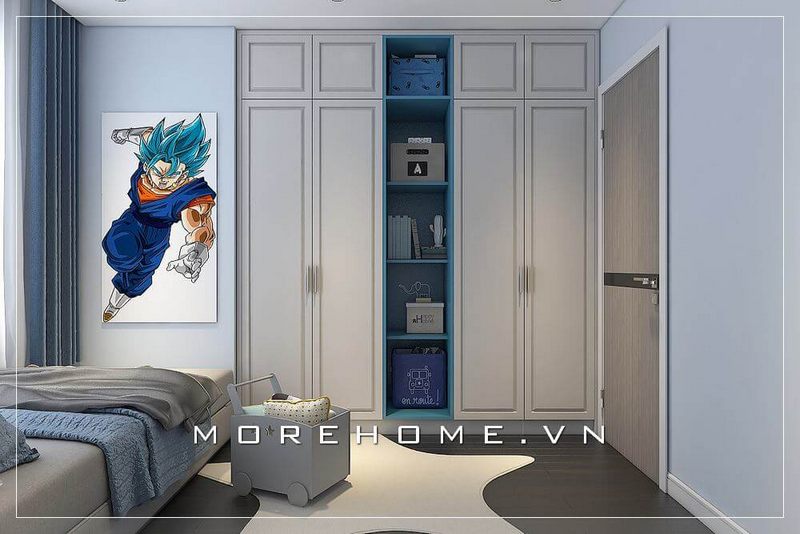 Tủ áo bé trai có thiết kế hiện đại và âm tường đầy ấn tượng.